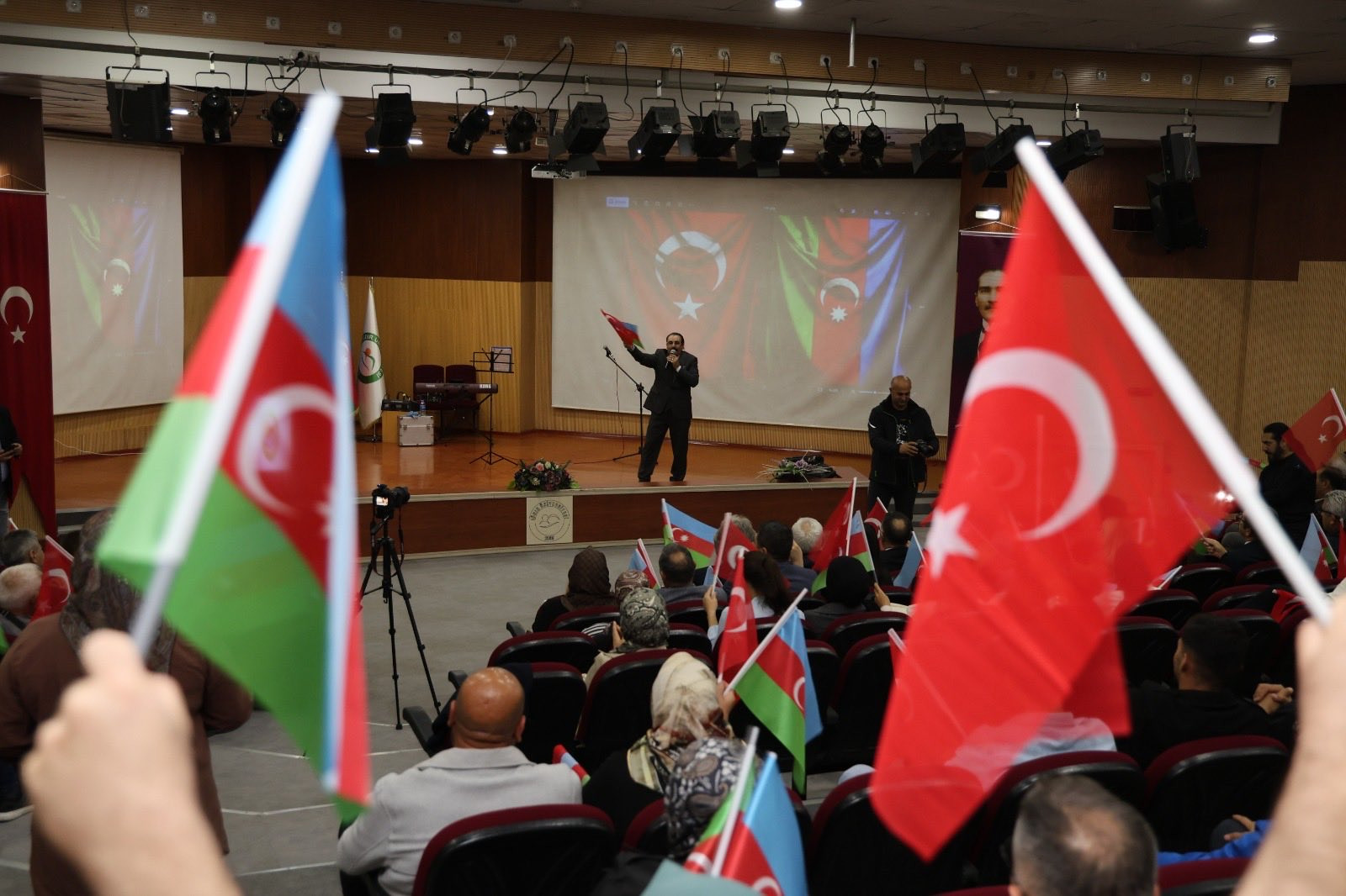 Etkinliğin başında Ulu Önder Haydar Aliyev, Büyük Önder Mustafa Kemal Atatürk ve şehitlerin aziz hatırası bir dakikalık saygı duruşuyla anılmış, Azerbaycan ve Türkiye’nin milli marşları okunmuş, bu yıl 75. yaşını kutlayan Azerbaycan Diller Üniversitesi Rektörü, halk yazarı ve akademisyen Kamal Abdulla’nın jübilesine adanmış bir video gösterimi sunulmuştur.